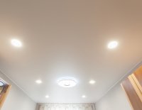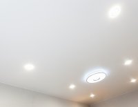 В отличие от глянцевых полотен за матовыми потолками ощутимо проще ухаживать. Они не требуют к себе особого внимания, на поверхности не остается никаких следов и даже пыль не оседает из-за антистатического покрытия. Использовать такое покрытие можно для оформления любого помещения – спальни, детской, ванной или кухни. Ими можно украшать большие залы или обычные комнаты. На фоне всего интерьера матовые потолки не будут притягивать к себе особое внимание, на вид конструкция будет создавать идеально ровную и гладкую поверхность.
