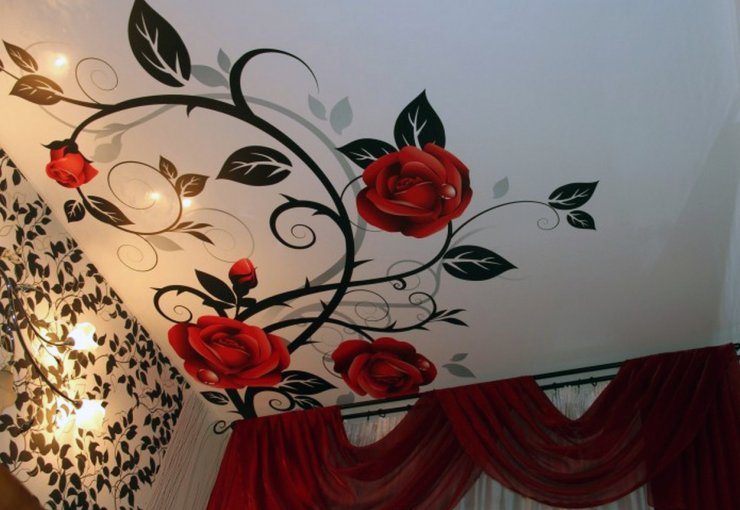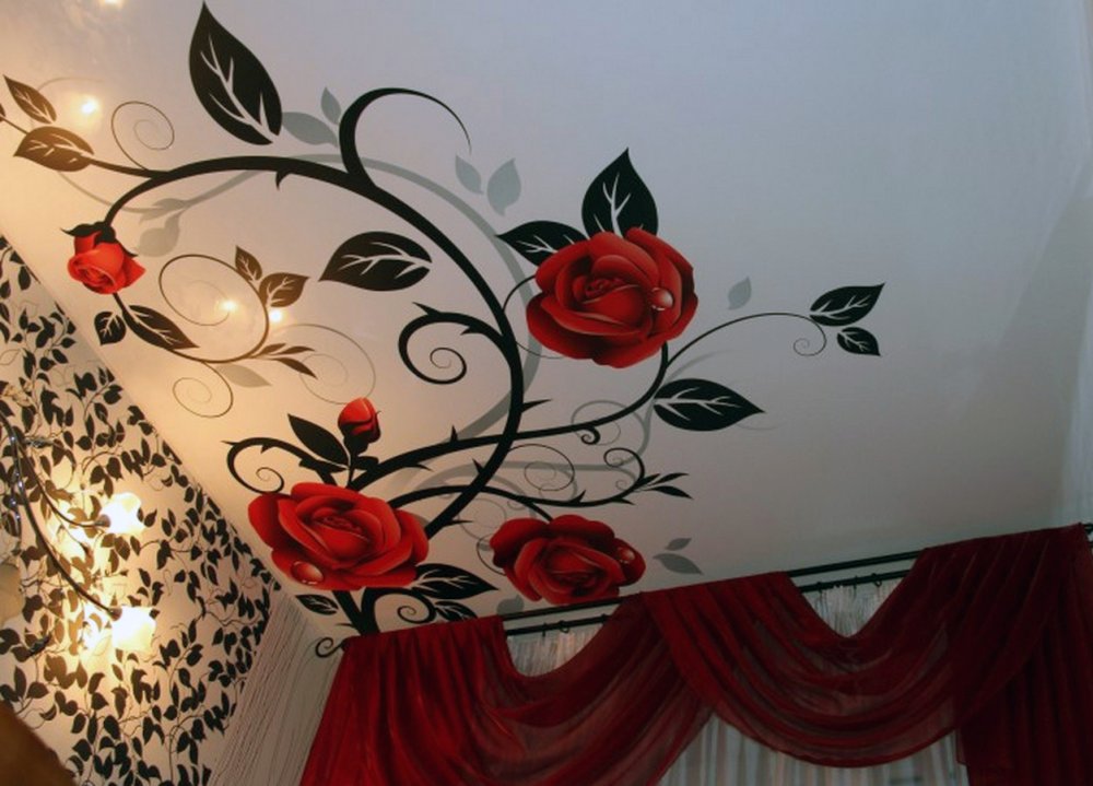 На натяжные потолки можно нанести любое изображение для придания помещению определенного характера и стиля. За основу можно принять любое полотно – матовое, глянцевое или сатиновое.