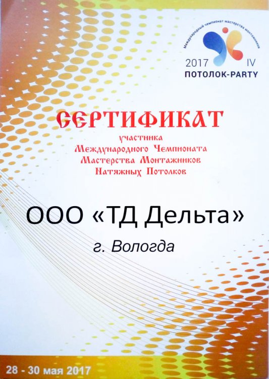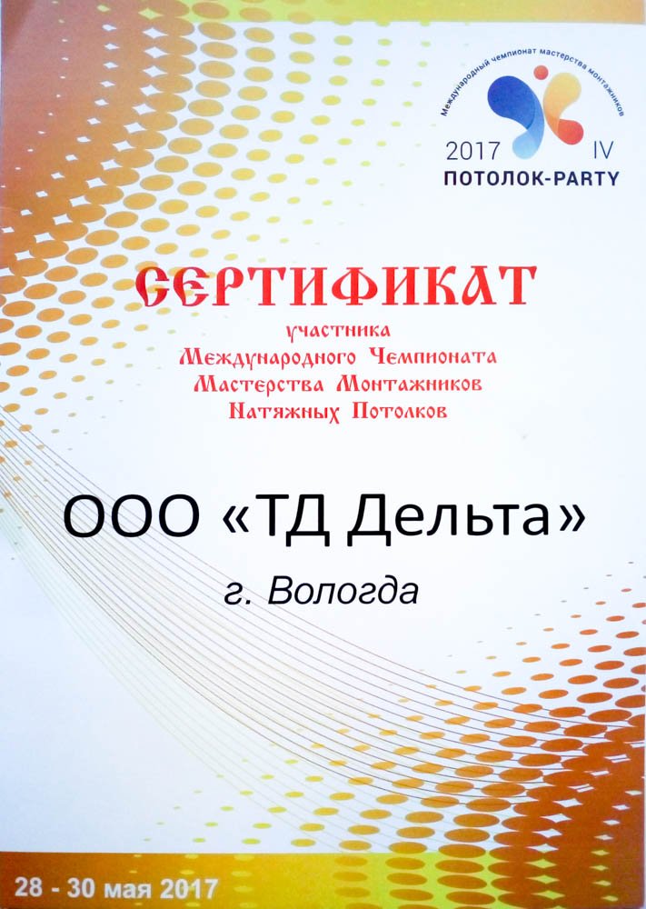 Сертификат участника чемпионата 2017