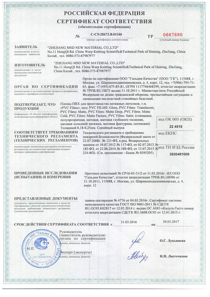 Сертификат МСД