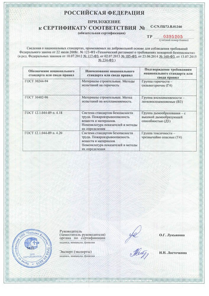 Приложение сертификата соответствия