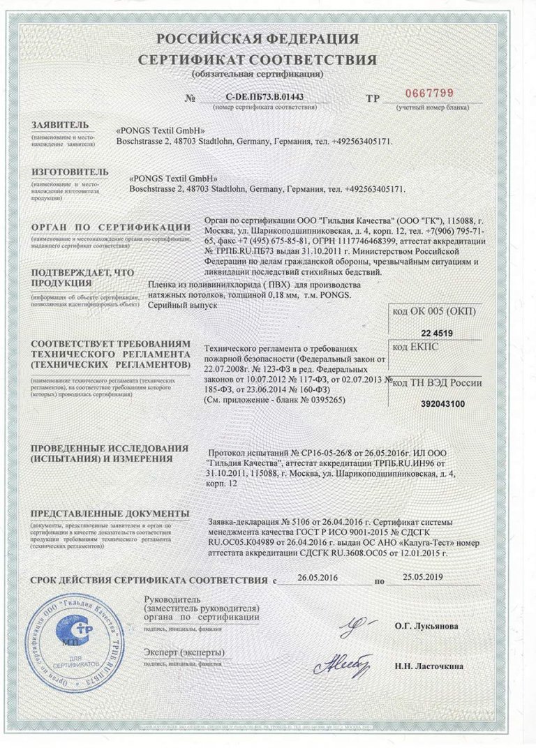 Сертификат pongs