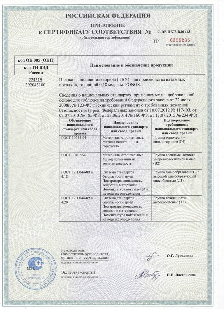 Приложение к сертификату pongs